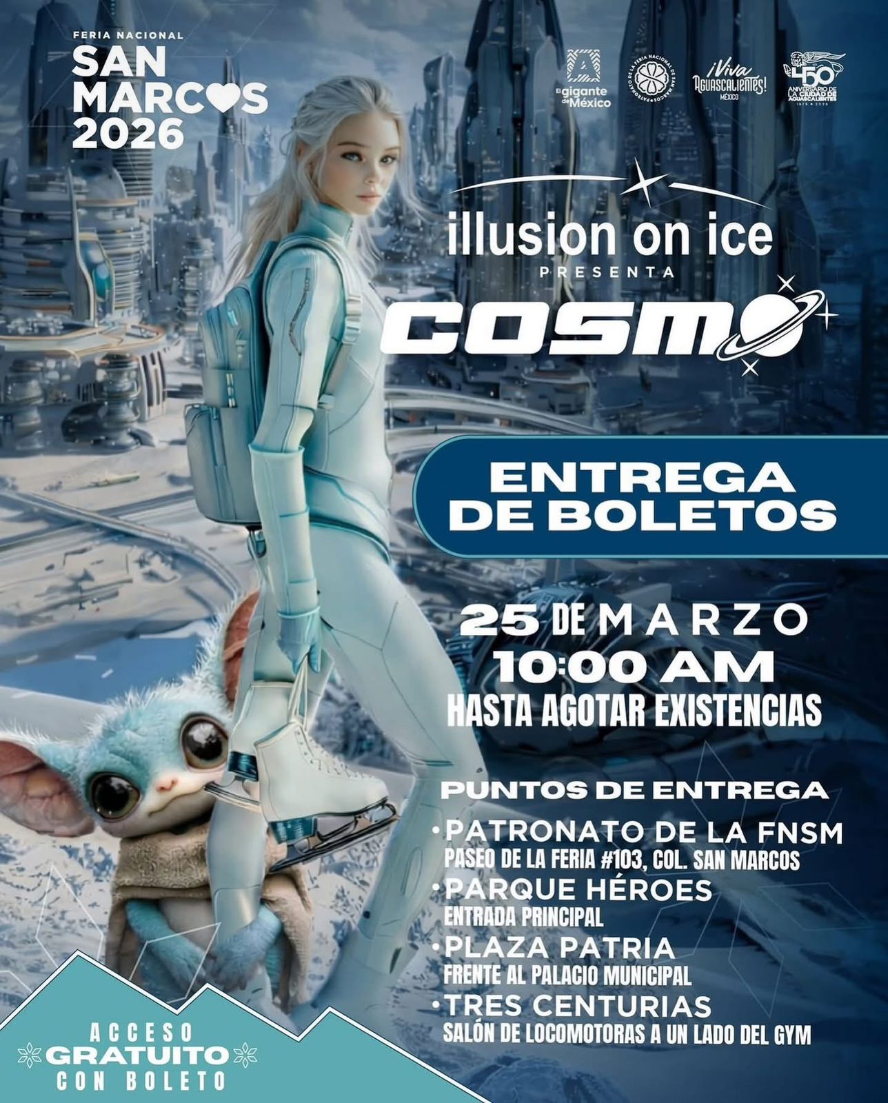 Te recordamos los puntos de entrega de boletos de Illusion On Ice, comenzamos hoy a las 10:00 H. Se entregan 4 boletos por persona a jóvenes y adultos. #FNSM2026
